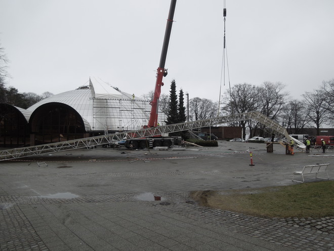 Det var av den grunn behov for tak over Tak for å sikre mot fuktskader i anleggsitiden.