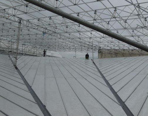 All eksisterende bunntekking skulle skiftes, samt isolasjon. Det var av den grunn nødvendig med Tak over Tak til dette prosjekt, for å hindre lekkasje og fuktskader ned i konstruksjon og aula.